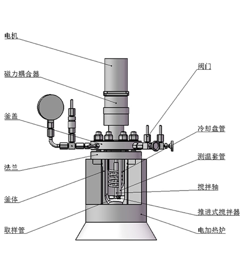 該結(jié)構(gòu)為端面磁力密封裝置,依靠?jī)蓧K強(qiáng)力磁鋼異極相吸的原理通過磁場(chǎng)穿透密封罩體來(lái)實(shí)現(xiàn)力矩的無(wú)接觸式傳遞,由于電機(jī)直接帶動(dòng)攪拌器,故而其攪拌特點(diǎn)是低轉(zhuǎn)矩高轉(zhuǎn)速(≤1500r/min),適合攪拌低粘度(cp≤2000mpa.s)或固體顆粒物含量較少的反應(yīng)物料介質(zhì)體系。